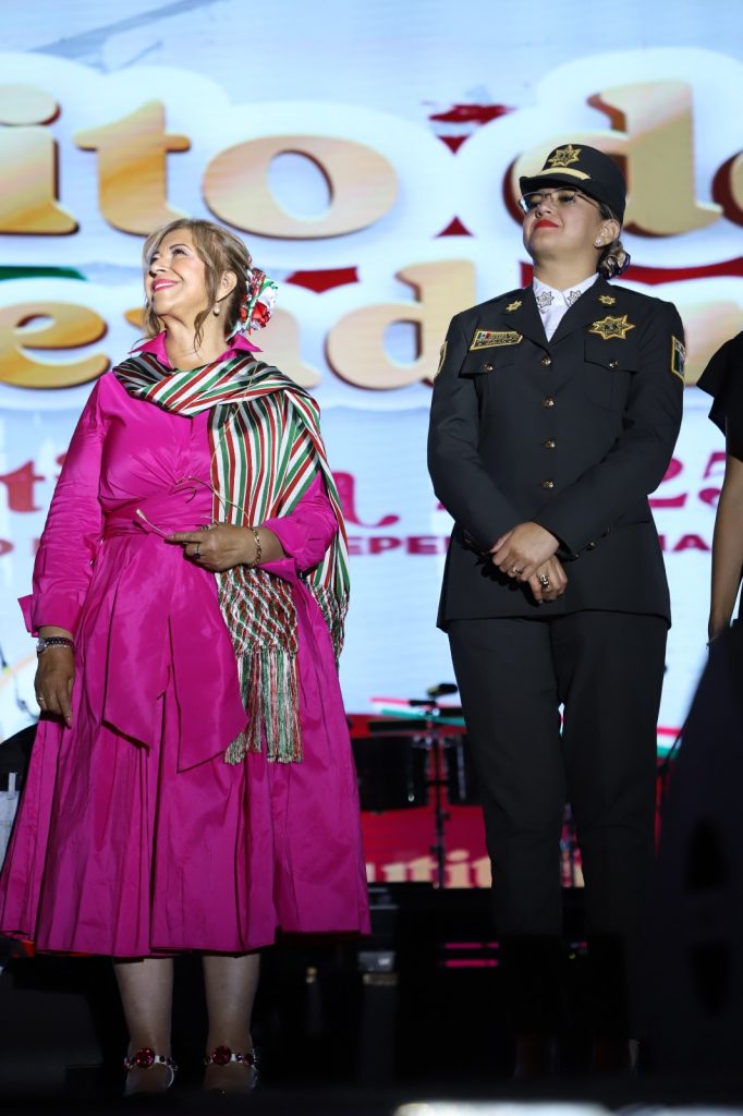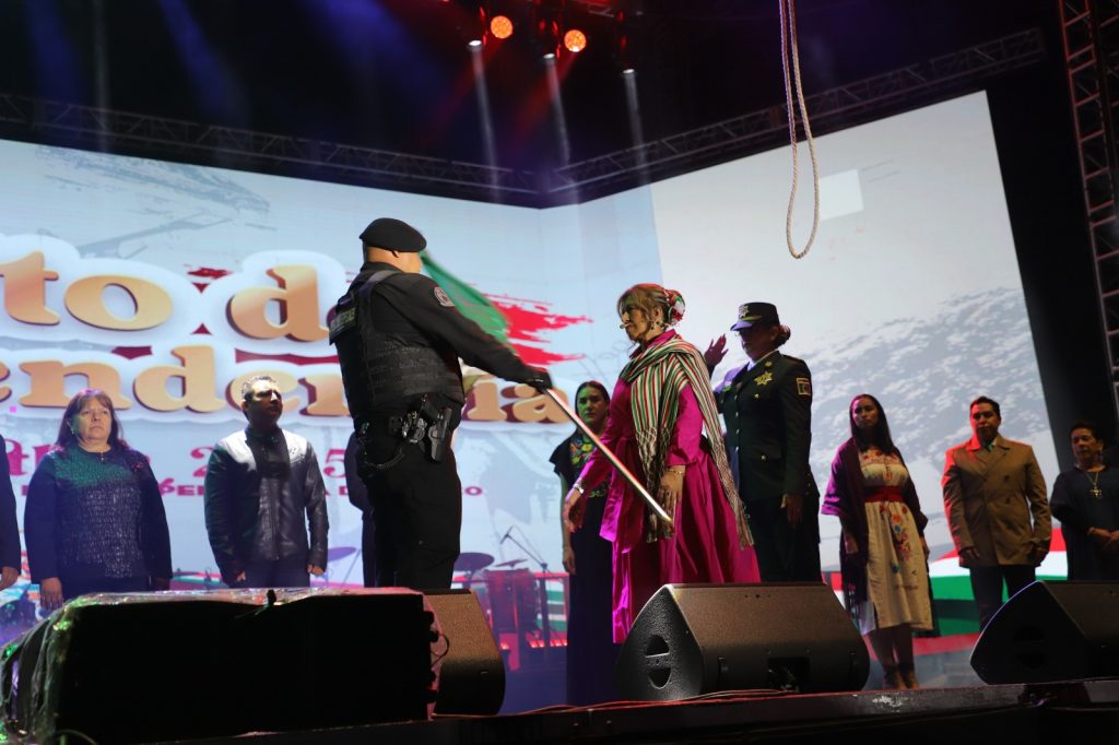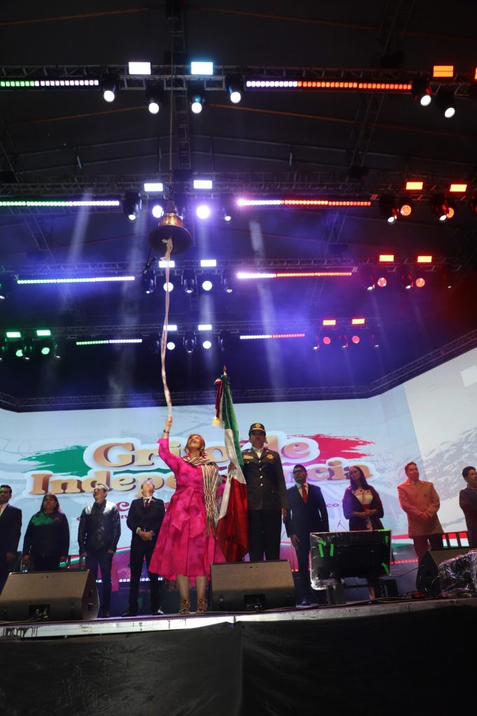 Con voz firme, la alcaldesa proclamó:“¡Mexicanos! ¡Vivan los héroes que nos dieron patria! ¡Viva Hidalgo! ¡Viva Morelos! ¡Viva Josefa Ortiz de Domínguez! ¡Viva Allende! ¡Viva Aldama! ¡Viva la Independencia Nacional! ¡Viva la democracia! ¡Vivan los pueblos originarios de México! ¡Viva Cuautitlán! ¡Viva el Estado de México! ¡Viva México!, ¡Viva México!, ¡Viva México!”