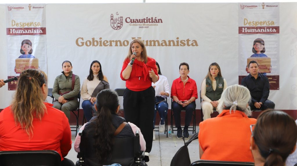 El Gobierno de Cuautitlán, encabezado por la presidenta municipal Juanita Carrillo, llevó a cabo la tercera entrega de la Despensa Humanista en la Concha Acústica del Parque de la Cruz, en un evento donde participaron integrantes del Cabildo local y cientos de familias beneficiarias.