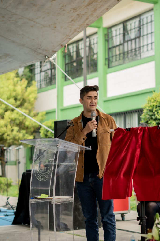 Por su parte, el presidente honorífico del Sistema Municipal DIF, Diego Reyna Carrillo, exalumno del CBT No. 2, compartió un mensaje a las y los estudiantes, recordando sus propias vivencias en este plantel.