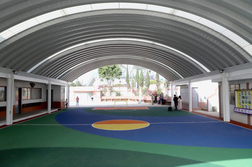 Este año —anunció— se entregarán más estructuras de este tipo en distintos planteles de educación básica y media superior. A este momento se han hecho entrega de 3 y una plaza cívica en un jardín de niños