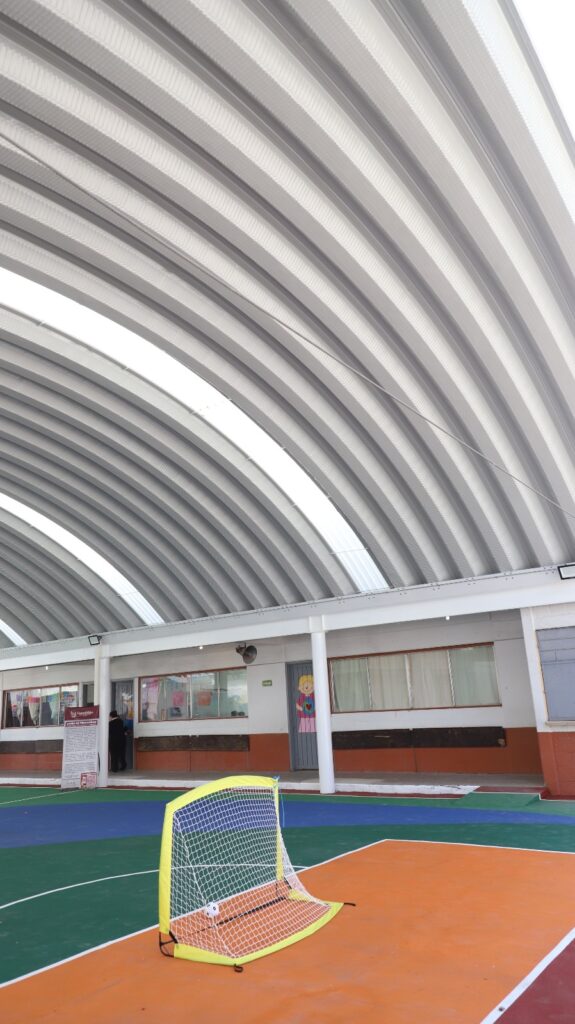 El director de Obras Públicas, Felipe Méndez , explicó que el arcotecho cuenta con 10 columnas de acero apoyadas en zapatas de cimentación, vigas metálicas y una cubierta con malla de seguridad, lo que permitirá realizar actividades deportivas, cívicas y culturales con mayor comodidad y seguridad.
