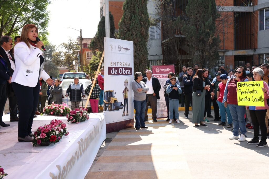 Juanita Carrillo destacó que, a diferencia de administraciones pasadas, en Cuautitlán las obras se realizan de manera integral, corrigiendo de fondo problemas estructurales como el mal estado del subsuelo, el drenaje y la falta de materiales adecuados, aun cuando ello represente mayores costos.