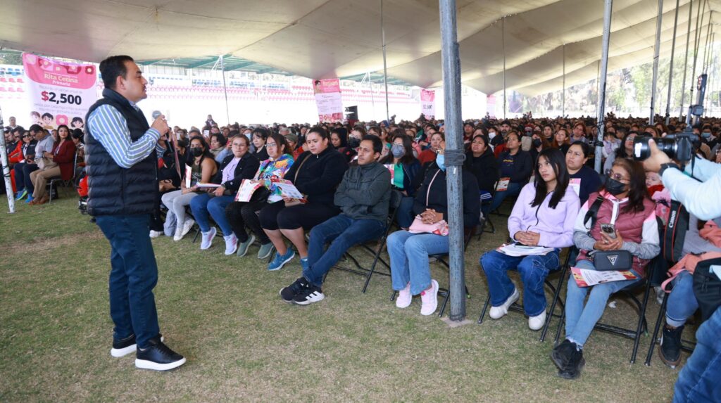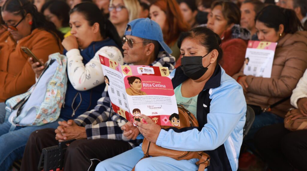En coordinación interinstitucional para fortalecer el acceso a la educación, se llevó a cabo en el campo de fútbol del Estadio Los Pinos una plática informativa dirigida a madres, padres y tutores sobre el proceso de inscripción a la Beca Rita Cetina, programa federal impulsado por el Gobierno de México, con el acompañamiento del Gobierno del Estado de México y el Gobierno Municipal de Cuautitlán.
