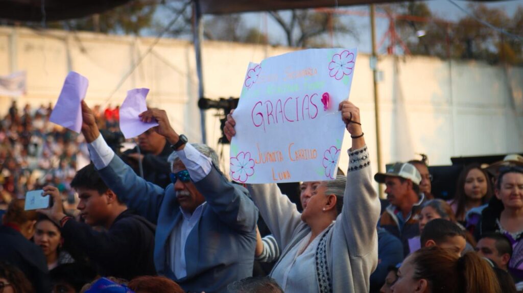 La presidenta reiteró su compromiso con la Cuarta Transformación, con la gobernadora Delfina Gómez y con la presidenta electa Claudia Sheinbaum.