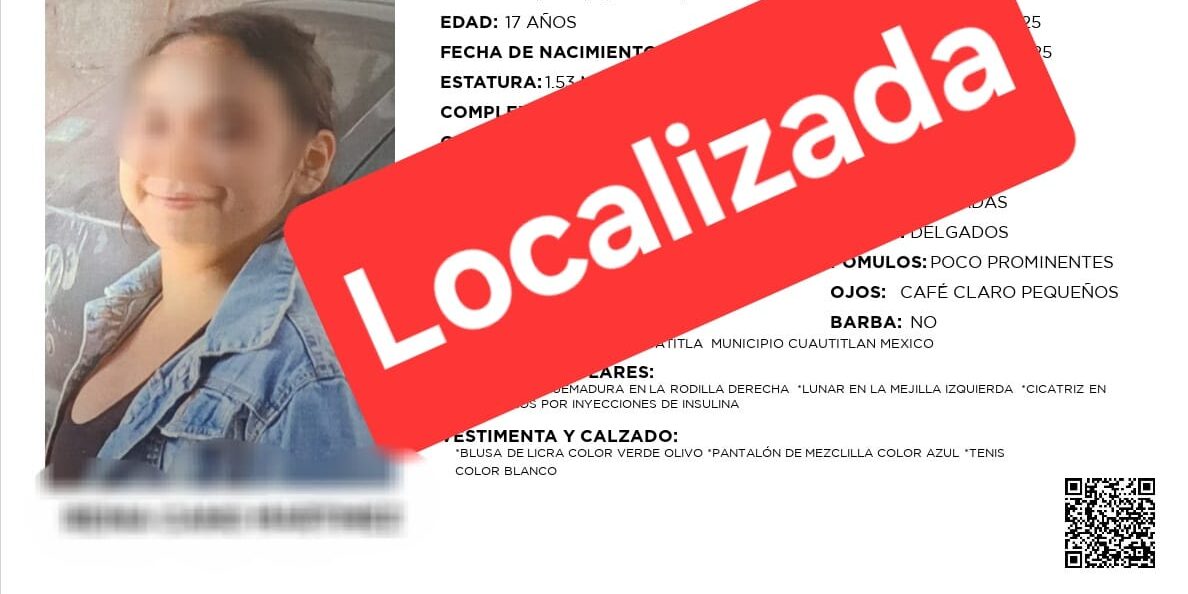 Gracias al trabajo coordinado de la célula de búsqueda de personas de la Coordinación de Prevención del Delito de Cuautitlán y el Centro de Mando (C4) del municipio de Huehuetoca, en la madrugada del pasado sábado fue localizada una adolescente de 17 años originaria de la colonia Santa María Huecatitla, quien había sido reportada como desaparecida desde el pasado 10 de abril.