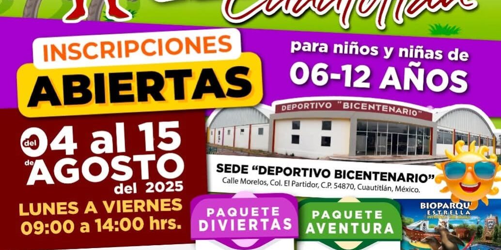 El Gobierno Humanista de Cuautitlán, a través de la Dirección de Educación, Turismo, Cultura y Deporte, invita a niñas y niños de entre 6 y 12 años a formar parte del Curso de Verano Cuautitlán 2025, un espacio seguro, divertido y formativo para aprovechar al máximo las vacaciones.