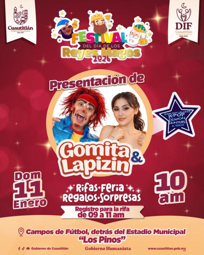 Cuautitlán, Estado de México a 11 de enero de 2025 Con el show de Gomita y Lapizin, las guerreras del K pop y la rifa de 600 bicicletas, festeja Juanita Carrillo y DIF Cuautitlán el día de Reyes El Gobierno Municipal de Cuautitlán, encabezado por la presidenta municipal Juanita Carrillo, a través del Sistema Municipal…